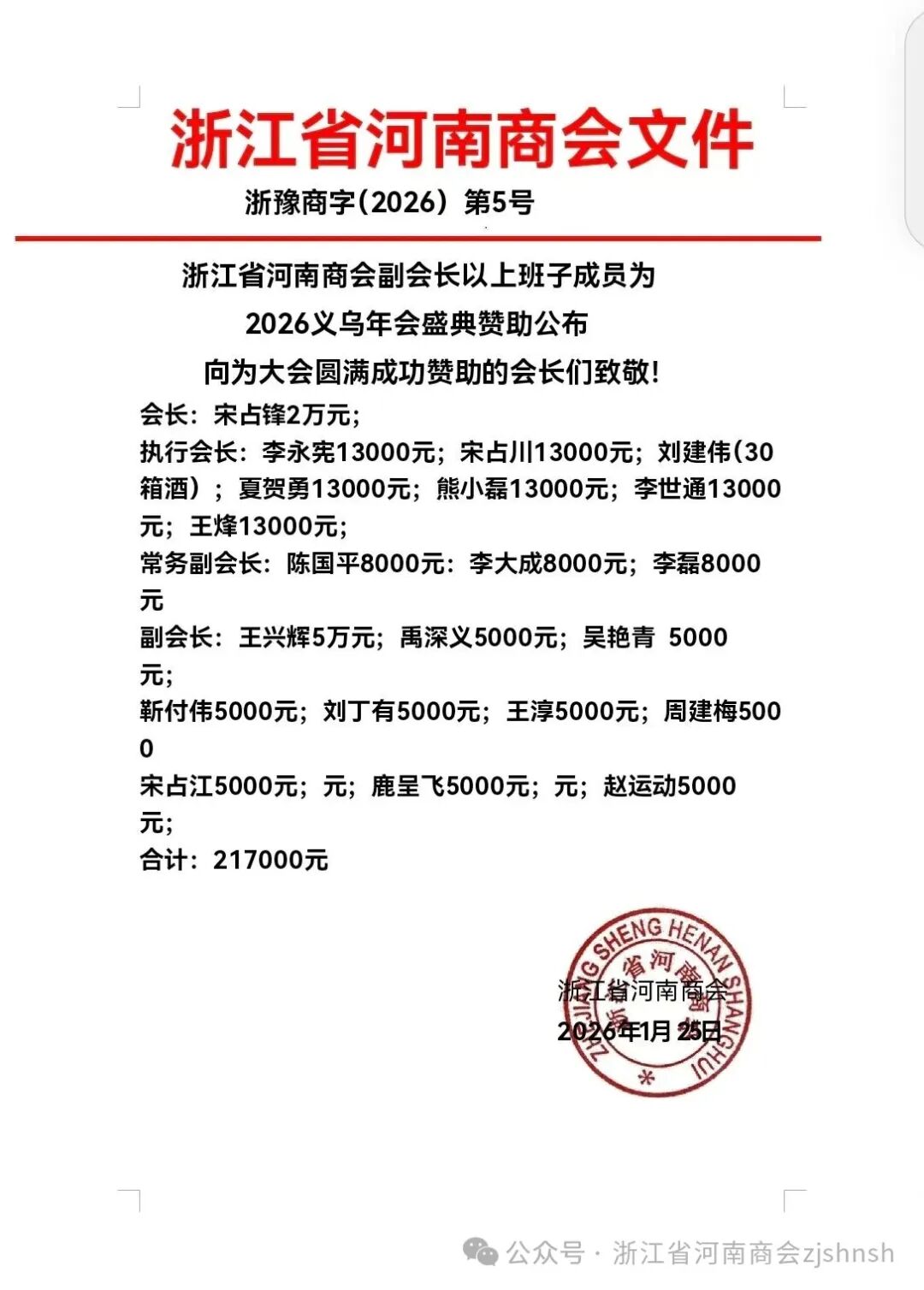 感谢浙江省河南商会会长班子的大力支持