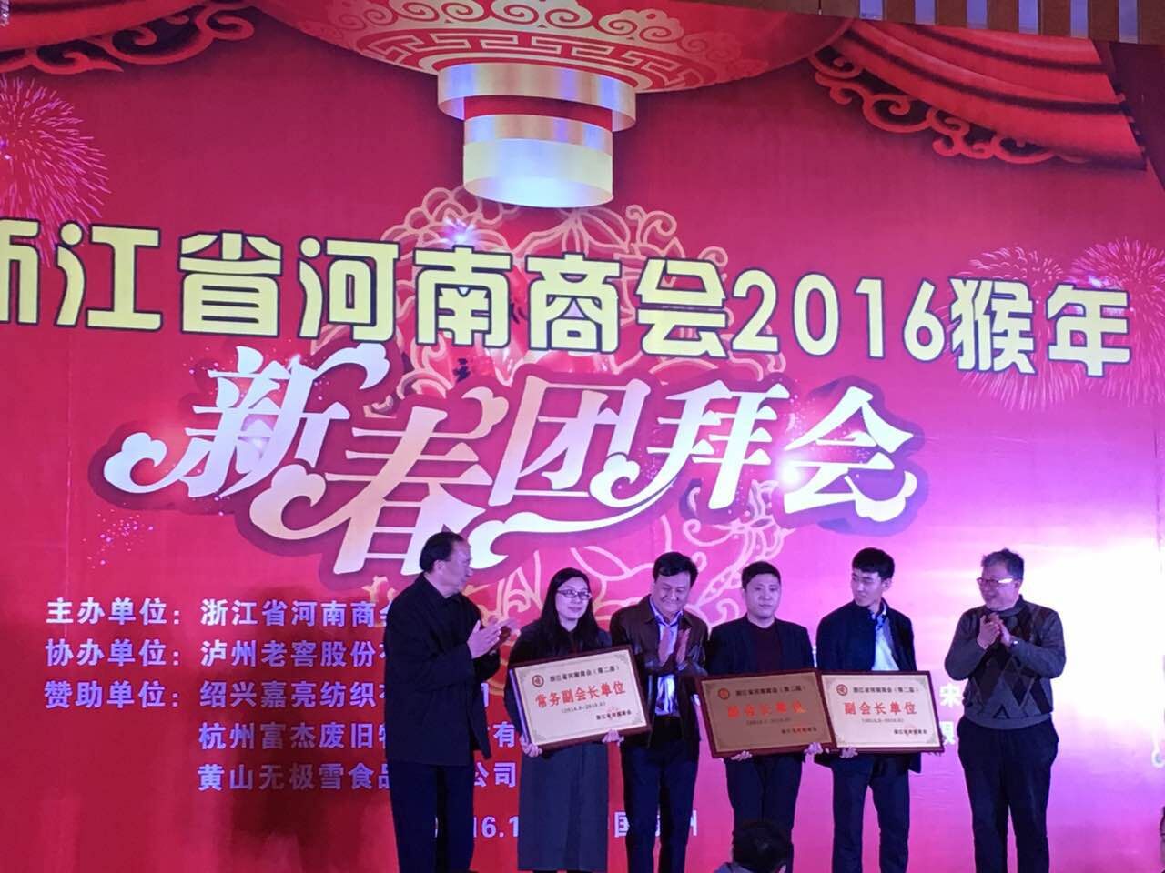 1月17日,浙江省河南商会2016猴年新春团拜会于龙禧福朋喜来登酒店三楼龙禧厅隆重举行!夜幕下的整个会场灯光璀璨、美轮美奂。会场内温暖如春、座无虚席。