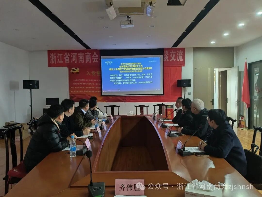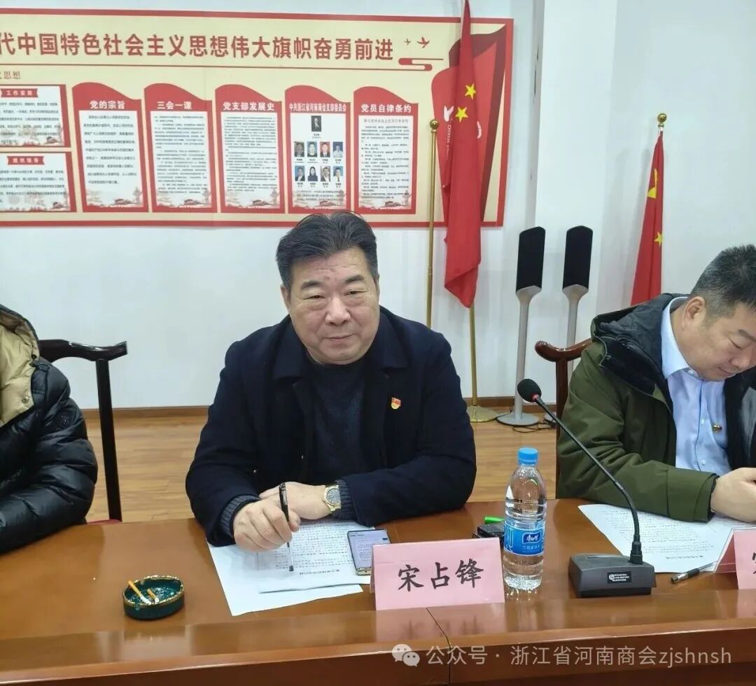 2026年1月22日,浙江省河南商会党支部召开党员大会,认真学习习总书记讲话精神,二十届四中全会精神、中纪委五次全会精神、中央经济工作会议精神,省工商联社会组织党委文件精神及要求,结合实际抓好落实,进一步加强党风清廉教育,端正商会风气。党支部书记、会长宋占锋主持会议。