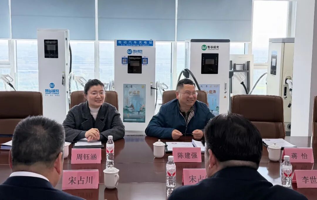 省工商联国际合作部副部长陈建强一行参观杭州智谷数字能源科技有限公司,与李世通董事长交流
