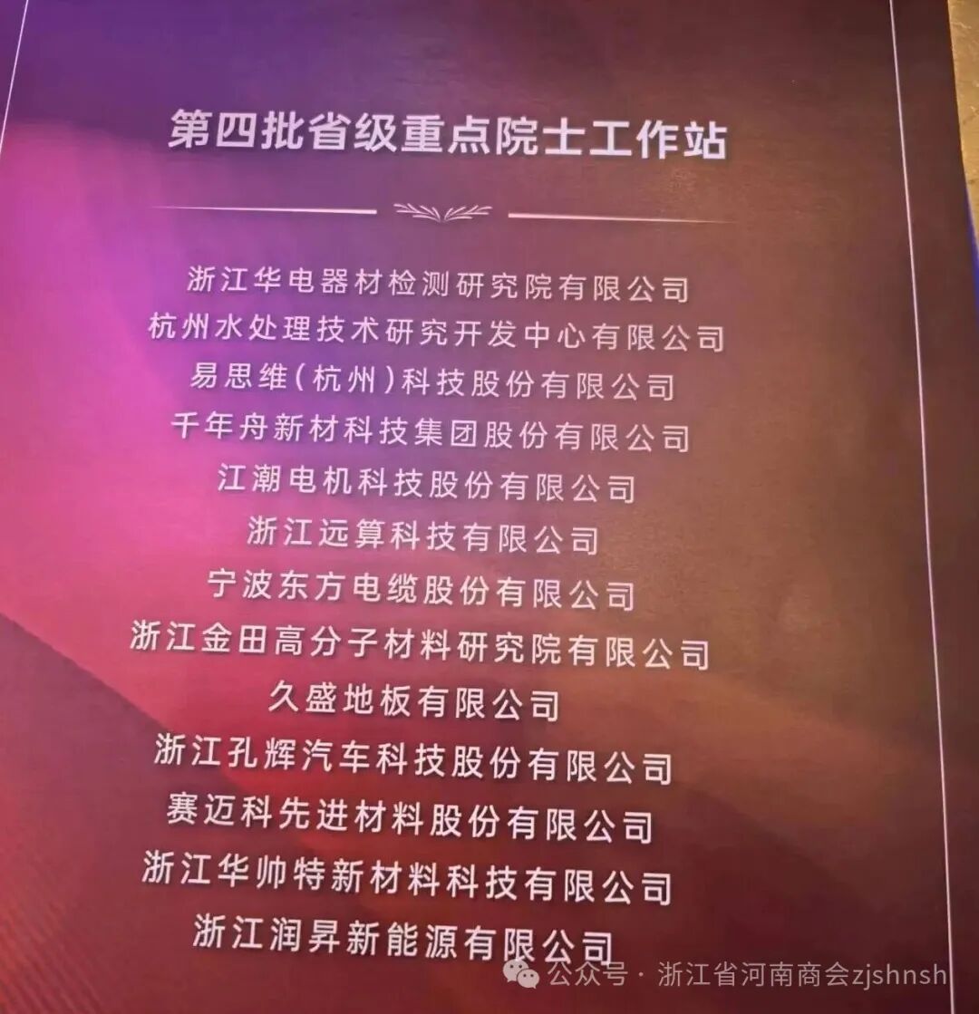 2025年度浙商企业绿色发展样本企业、2025年度浙商企业国际化样本企业、2025年度浙商企业增长样本企业、2025年度浙商企业人工智能应用场景样本企业、第四批省级重点院士工作站等企业