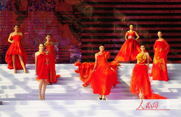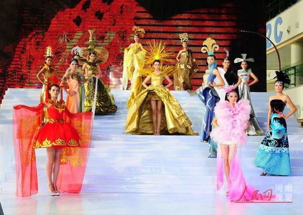 9月2日晚,郑东新区CBD会展中心灯火通明,流光溢彩,近百米长的T型通道上,50余名模特多姿多彩、川流不息。由河南省人民政府、中国纺织工业协会主办,郑州市人民政府承办的“河南省承接纺织服装玩具产业转移洽谈会”欢迎晚宴服装表演正在举行。领衔表演的模特为国际知名模特莫万丹、王敏、李亚红、米露、王玉、名模中原工学院毕业生许燕、张东以及外籍模特,中原工学院多名在校模特学生为表演主力。