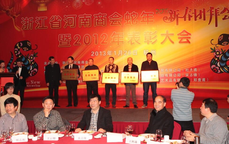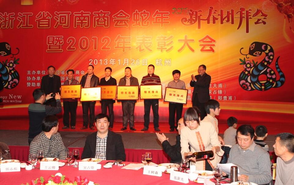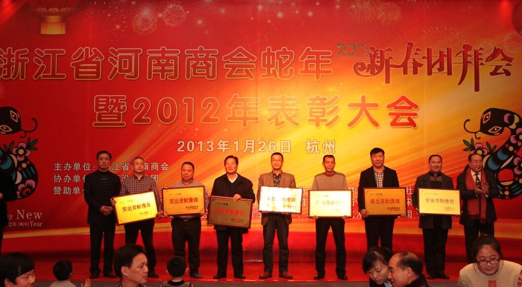 2013年1月26日,为了加强广大在浙豫商、豫籍知名人士、商会会员之间的交流、沟通与联谊,浙江省河南商会龙年新春团拜会暨2012年总结表彰大会在杭州滨江龙禧福朋喜来登酒店隆重举行。