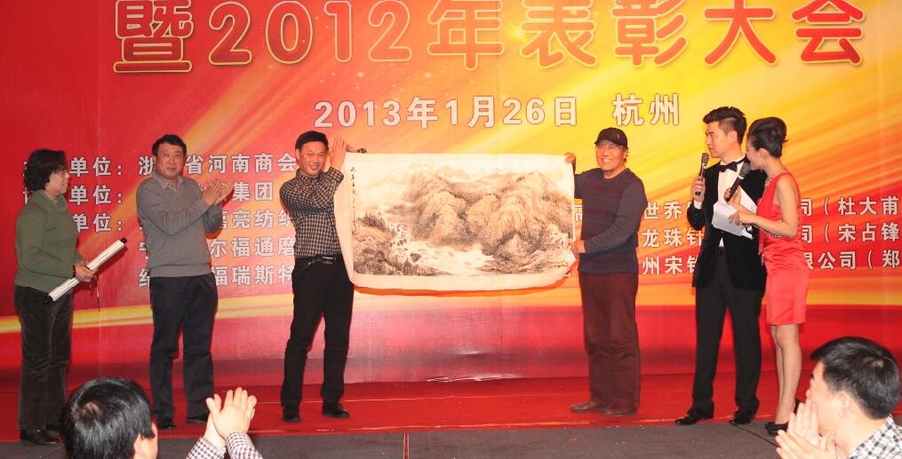 杭州师范大学张道森教授、浙江工商大学刘彥勇教授向浙江省河南商会赠送画作。