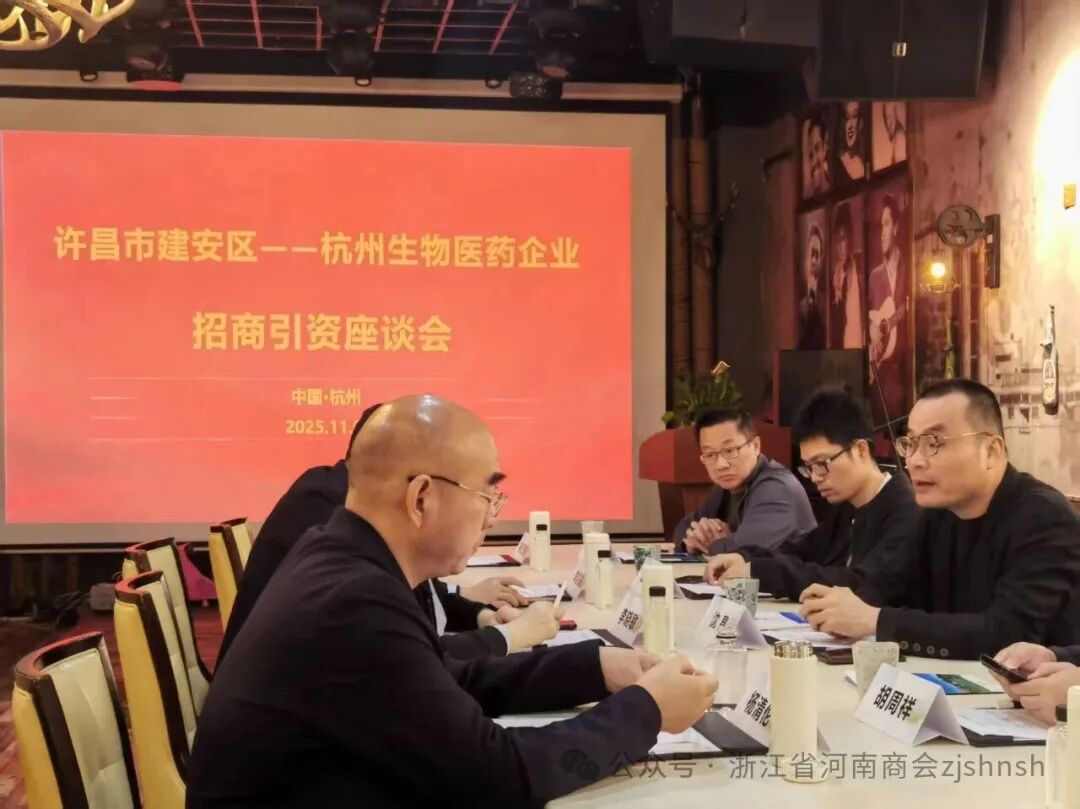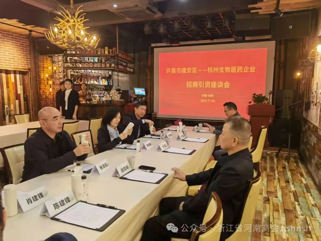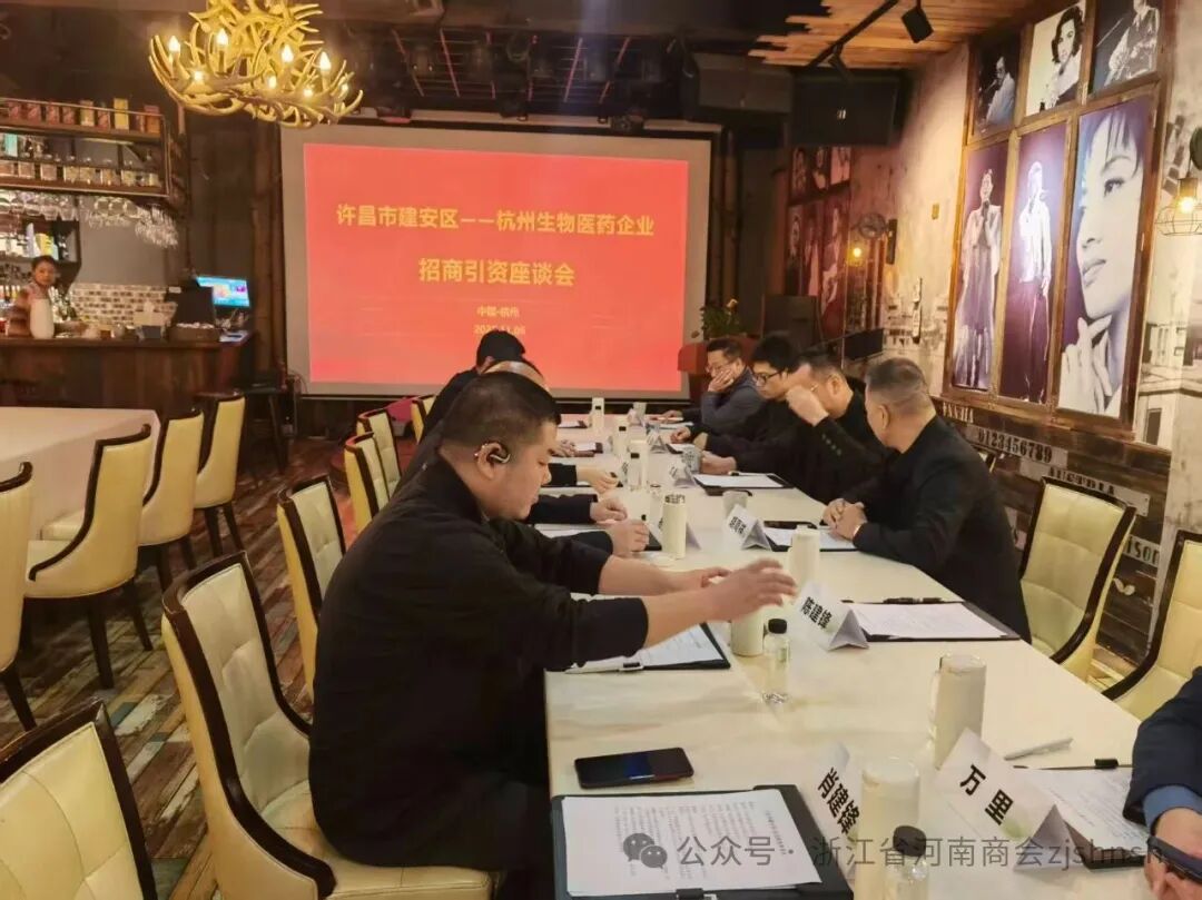 中国国际贸易学会金融文化贸易工作促进委员会副会长兼秘书长胡周祥、中国国际贸易学会金融文化贸易促进工作委员会常务理事,北京中卫生物科研转化研究中心,杭州协合医疗用品有限公司董事长沈晶、中国国际贸易学会金融文化贸易工作促进委员会理事,浙江中普能综合能源科技有限公司董事长陈建锋、深圳投融金控有限公司董事长彭星、浙江舜博环境科技董事长,舜家宝红木艺术博物馆馆长,古家具鉴定师徐锋、杭州浩月实业有限公司董事长邱豪栋、联东集团投资发展中心副总经理贾义正、世纪一束(杭州)医学诊断科技有限公司副总经理万里、浙江大沩人工智能副总经理张琪等欢迎建安区考察团并举行座谈交流。