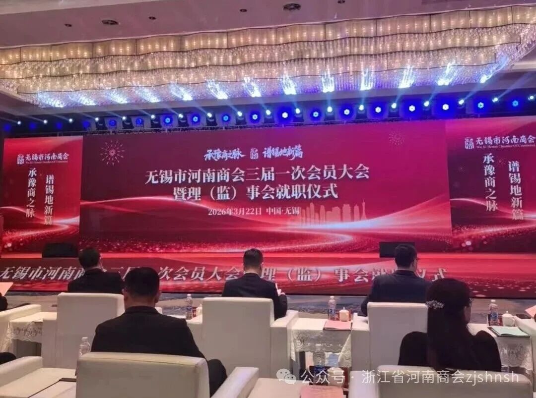 春暖花开,百花争艳;骏马奔腾,马年大运!2026年3月22日浙江省河南商会会长宋占锋、执行会长刘建伟、监事长郭占伟应邀赴无锡市与各兄弟商会一起恭祝无锡市河南商会第三届换届大会暨十五周年庆典隆重举行!河南省豫商联合会及无锡市领导、各兄弟河南商会会长秘书长参加了会议。