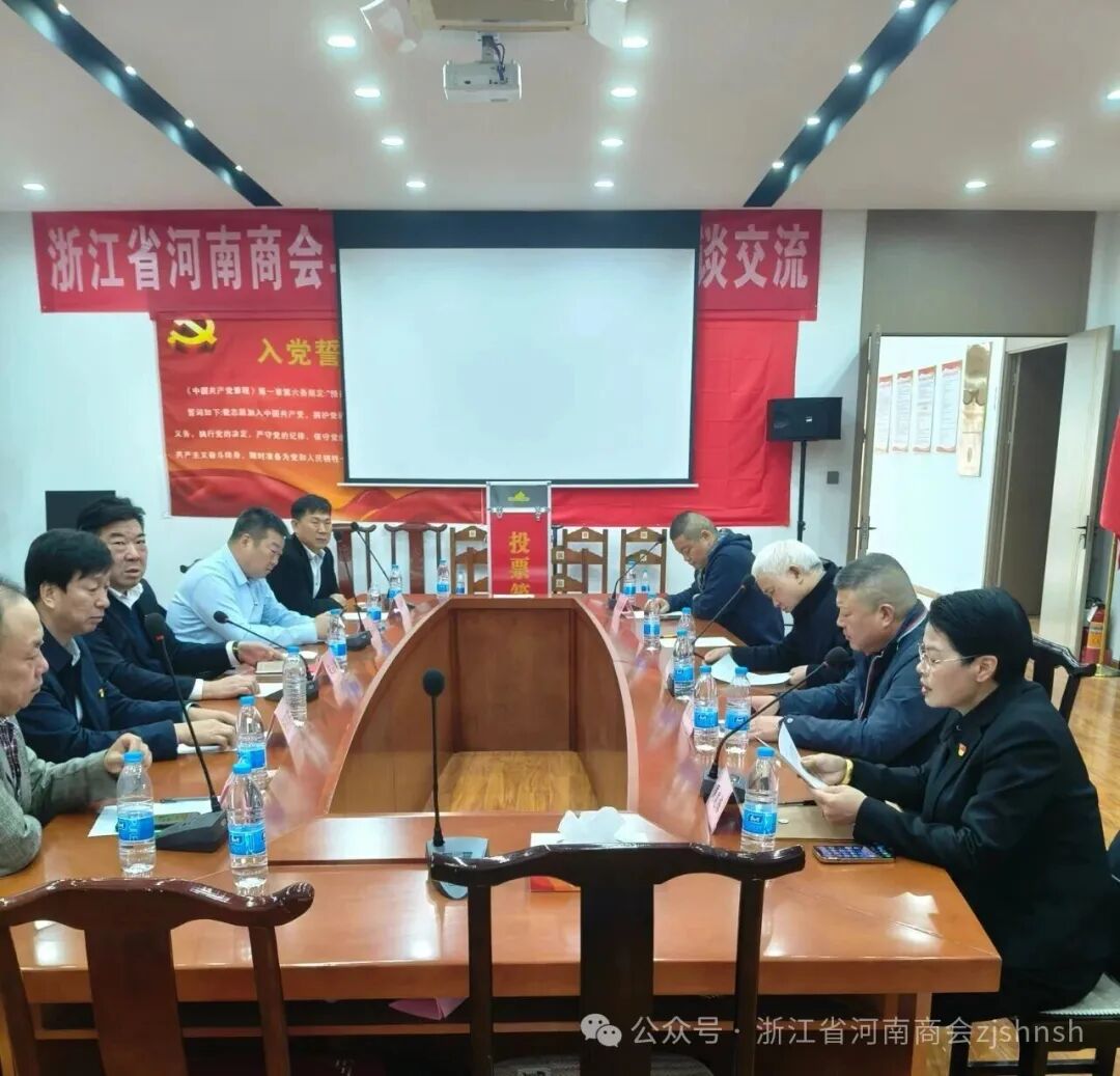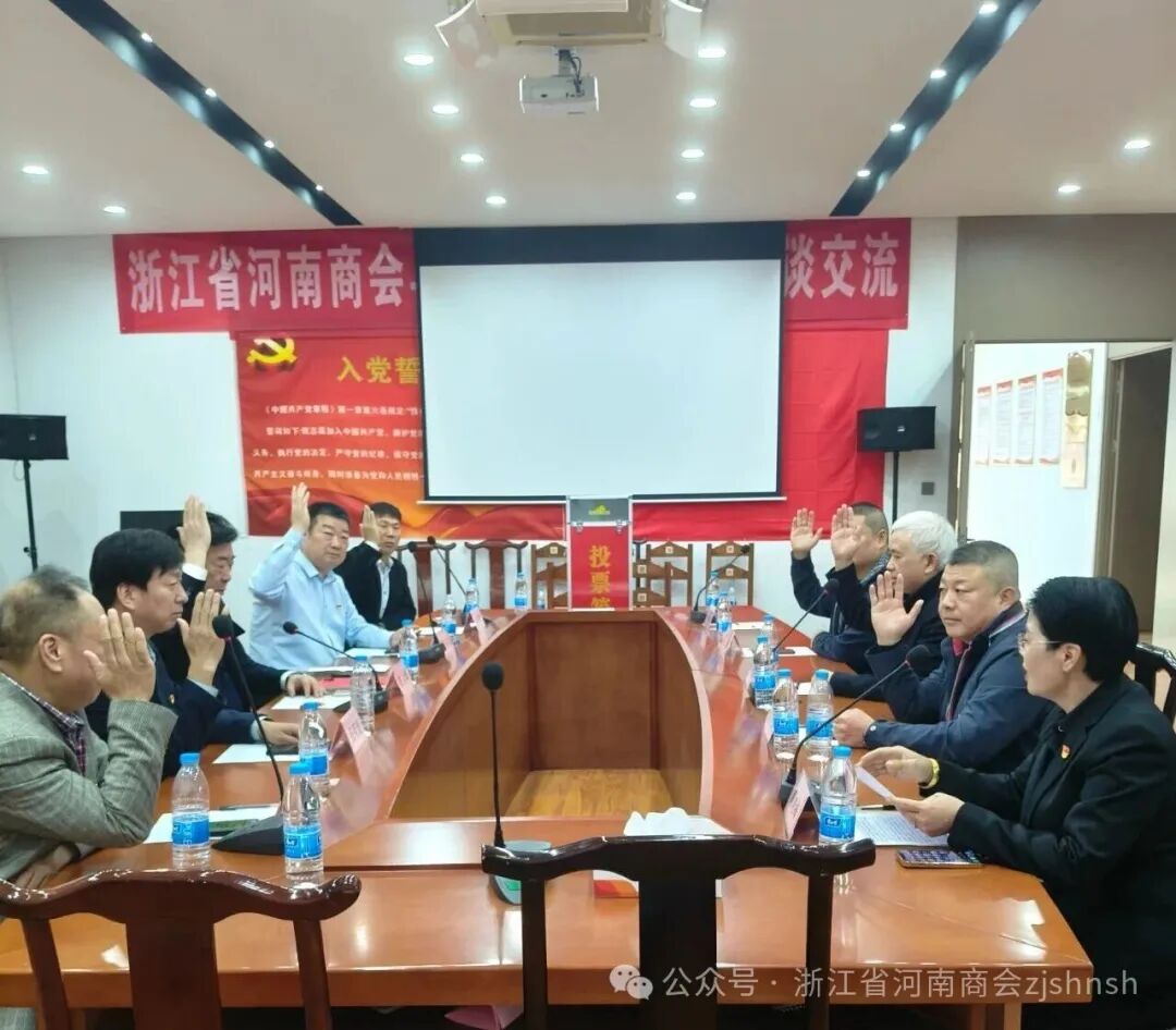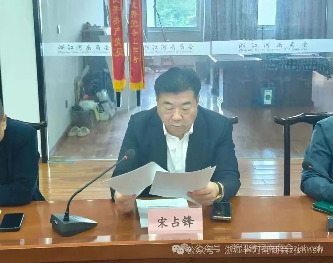 浙江省河南商会党支部召开党员大会,部署年度总结、筹备组织生活会和民主评议党员工作、筹划2026年工作和预备党员转正。党支部书记、会长宋占锋主持会议并讲话。